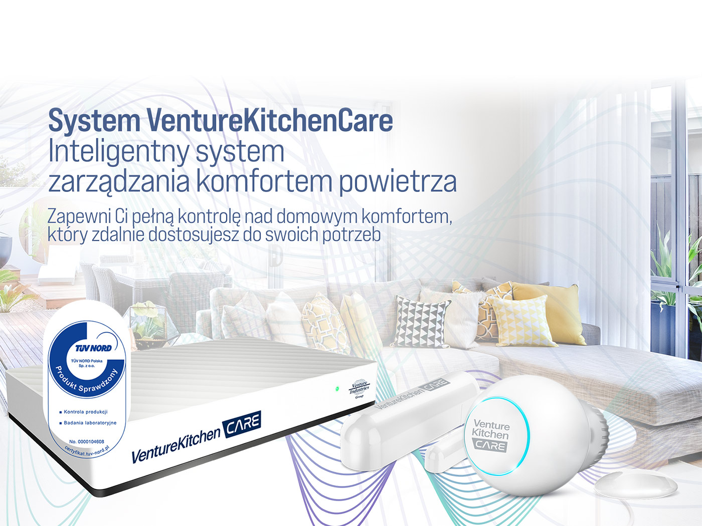 System VentureKitchenCare w 2 zestawieniu to rozszerzenie 1 pakietu o gamę urządzeń mających na celu maksymalizację komfortu poprzez zwiększoną kontrolę nad jakością oraz temperaturą powietrza. W pakiecie 2 znajdują się: